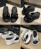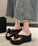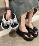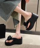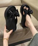 トレンド感あふれるリボン装飾付き厚底サンダルです