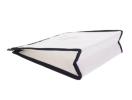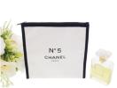 シャネルビューティー2022年のノベルティ コスメポーチです。ショッパー(紙袋)を思わせるデザインになっており、シャネルらしいホワイトを基調としたとても清潔感のあるシンプルなポーチです。シャネルの香水「CHANEL N°5 PARIS」のロゴがプリントされており、サイドを取り囲むように縁取られたブラックのラインがポイントです。底にマチがあるので収納力があるのに、畳めばかさばらずにスッキリと持ち運べます。