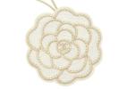 シャネルが愛した花が咲き誇るカメリアのバッグチャームです。両面ともにカメリアが豪華に刺繍されており、花芯の部分にはココマークもデザインされています。オートクチュールドレスの一部分のようで、糸から織り出された柔わらかい雰囲気がとても素敵です。カメリアの幾何学的な曲線が、無限のスタイルに美を添えるでしょう。 ラ コレクションの元箱&個体番号有ります。