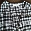 ブラック・ホワイトのチェック柄のシャツワンピース、長袖デザインでカジュアルに着こなせます。