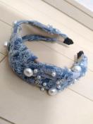 デニム パールデザイン カチューシャ ヘアアクセサリー