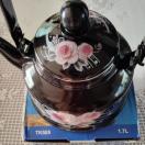 花柄の黒のケトルです、薔薇柄素敵なケトルです