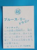 ブルース・リー ミニカード 46「ヌンチャク」です。ケンリック/TOWA。縦7cm幅5cm。年代物なので汚れや色あせなど有りますがめくれなどは無いです。現状渡しと成りますので画像を良く参照の上落札お願い致します。最安送料はミニレター¥85です。締切日時