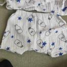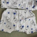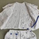 ミルク瓶と星のプリントが可愛い甚平スタイルのベビー服。