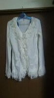 フリー未使用長袖白透かしロングカーディガン
