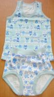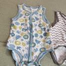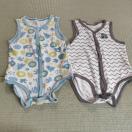 カラフルな魚柄とジグザグ模様のベビー肌着2点セット。