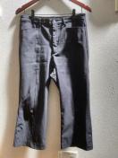 センターシームが細見せ効果の、黒のきちんとした七分丈パンツです。