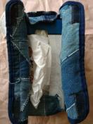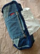 ティッシュケースを入れ、マジックテープで留めてご使用いただきます。