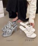 透明感のあるクリアヒールと繊細なストラップが足元を美しく演出し、歩くたびに軽やかな印象をプラス!