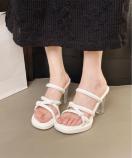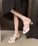 クリアヒールのストラップサンダル、上品で洗練されたデザインです