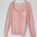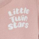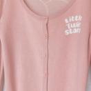 「little twin stars」の刺繍が施されたピンクの長袖カーディガン。