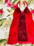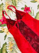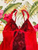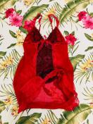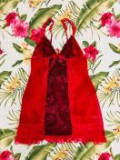 EBLINの特徴的がいっぱいのランジェリーです。綺麗なスレンダーデザインが可愛い赤のキャミソールです。全体的に透け感があってキュートです。