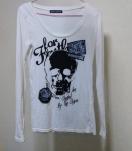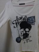 白地にドクロと英字、ワッペンがカッコいい長袖Tシャツです