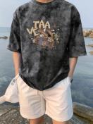 メンズ レトロ タイダイ グラフィック Tシャツ - 「TAA YEAH」デザイン、軽量&ストレッチ ポリエステル生地、カジュアル・フィットネス・アウトドア活動用半袖クルーネックティー、ヴィンテージスタイル シャツ | ポリエステル繊維