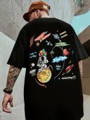 コットン宇宙探査キャラクタープリントルーズ半袖Tシャツ、ティーンズ向けクリエイティブカジュアルトップ - 洗濯機可