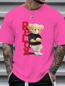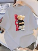 コットン宇宙探査キャラクタープリントルーズ半袖Tシャツ、ティーンズ向けクリエイティブカジュアルトップ - 洗濯機可