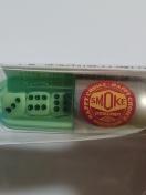 コンビニで購入したタバコ付録のダイス付キーホルダーの未開封/新品です。縦約3]直径約1cmのカプセル状の本体に5ミリ角のダイスが3個入っています。本体にsmoke/HAPPY CHOICEのシール。最安送料は定形外¥140です。締切日時