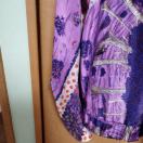 ランダムに赤い水色や小花の柄の切り替えが入っており、賑やかだけど、全体をパープル系が占めているので、シックな印象です。
