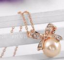 パール リボン付き ネックレス ローズゴールド