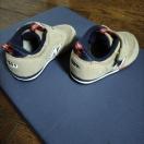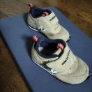 ベージュのスニーカー、マジックテープ式で履きやすい。