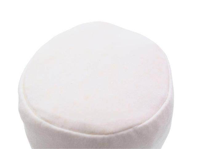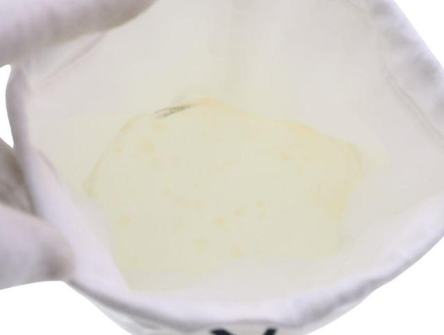 写真撮影のために手袋をして触れておりますが、外装パッケージがない未使用品になります。丸底生地に黄ばみシミがあります。