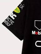 メンズ スタイリッシュ ブラック ポリエステルTシャツ、太字の白「オラクル」プリント付き - カジュアルなラウンドネックティー - 洗濯機可