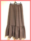 かわいい楊柳シフォンチェックフリルフレアロングスカートです。