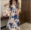 女性用オフショルダーキミソールナイトガウン、ユニークな花柄デザイン、快適な家庭用ウェアに最適。