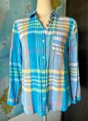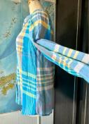 青系のチェック柄で、軽やかな着心地の長袖シャツ。