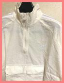 アディダスのかわいいドライコットンサッカー地ラインプルオーバートップスです。