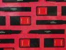 シャネル メイクアップの可愛いポーチです。表面はスリムなペンタイプのダイヤル式スティックルージュ「ルージュ ココ スティロ 」と、爪を保護しながら鮮やかな発色を叶え長時間美しいネイルをキープするネイル エナメル「ヴェルニ」のイラストが透明ビニールにプリントされています。裏面は透けない素材のレッド一色で、中央にCHANELのロゴ入り。ビニール素材なので水濡れも安心なフラットタイプのポーチです。