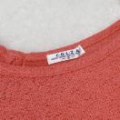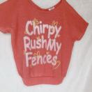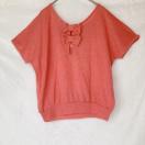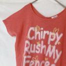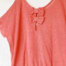 フロントにプリントが施されたキャンディピンクのカジュアルな半袖ドルマントップスです。