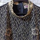 スタンドカラー、衿と袖部分はゴールドのレースでゴージャス。