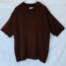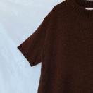ゆったり、シンプルなデザインのダークブラウンのサマーニット半袖セーター。