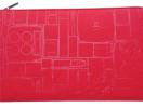 シャネルMAKEUPのコスメポーチです。シャネルを代表するアイシャドウ の「レ キャトル オンブル」のパレット、ネイルエナメルの「ヴェルニロングトゥニュ」、リップスティックの「ルージュ アリュール」、マスカラの「ル ヴォリューム ストレッチ」のコスメパッケージ柄が入っています。本体も模様も同色レッドですが角度によって柄が見え隠れするので、趣が深い大人のポーチになっています。
