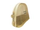 ヴァニラ プラニフォリアの恵みを凝縮した、シャネル最高峰のスキンケア ライン「サブリマージュ」のコスメポーチです。高級感のあるゴールドカラーのメッシュ地になっていますので、開けなくても中身を確認できて便利です。底部分に取り外し可能な収納ポケットが付いてます。半月型のラウンドポーチで、ファスナープルにはヴァニラの花柄チャームも付いており素敵です。