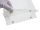 肌を深いうるおいで満たす保湿スキンケアライン「イドゥラ ビューティ」のノベルティポーチになり、「HYDRA BEAUTY CHANEL」のタグが付いています。底マチがある紙袋型なので収納力があるのに、畳めばスリムに持ち運べます。中身が見えにくい半透明の乳白色カラーに、水色のホックがポイント。素材はプラスチックの一種になり、弾力性があり柔らかく、水濡れからも守れますので洗面所でもお使いいただけるポーチです。