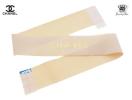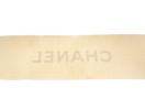 シャネル店舗にてラッピングで使用されていたワイドタイプのリボンです。フレグランス「ガブリエル」のボトルは、 美しいカットが施されたスクエアが特徴。そのボトル模様をイメージさせる地紋が入ったゴールドカラーの生地になり、中央にはCHANELのロゴが箔押しされています。贅沢に6cmもある幅広リボンの片側端には両面テープが付いていますので、ラッピング用としてプレゼントに巻いたり、手芸材料としてヘアアクセサリー等へのリメイク、デコレーションに使用するなどアレンジ次第で美しく飾れます。フランス有数のリボンメーカー Oriol&Fontanel(オリオール&フォンタネル)社製。