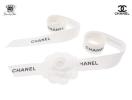 シャネル商品ご購入時にラッピングとして使われていた、カメリアのステッカーとリボンになります。カメリアはふんわりと立体的なコサージュのような造りになっており華やかです。リボンは長短2本あり、黒文字の「CHANEL」のロゴがプリントされています。愛され続けるため多くの人に支持されている定番デザインなので、誰もが目にしたことがあるでしょう。手芸の材料としてコサージュやハンドメイドアクセサリーへのリメイクもおすすめです。