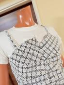 ストレッチ大!!柔らかいTシャツで、ツィードキャミソールは、3段シャギーで、気になるところはしっかりカバー!