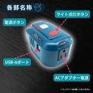 【多機能電源ステーション】AC出力(100V/1.25A)とUSB出力(5V/2.4A)の2ポート同時使用が可能。スマートフォンなど複数機器の同時充電ができ、緊急時に役立つ200ルーメンのLEDライトも内蔵しています。