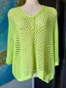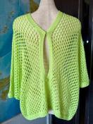 透かし編みのオープンバックカーディガン、明るいライムグリーン。