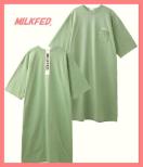 ミルクフェドのかわいい完売バックテープロゴポケットTシャツワンピです。