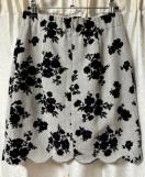 グレーと黒の花柄のフレアスカート、スカラップヘムデザイン。