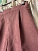 商品説明スエード風のピンクワイドパンツ、プリーツデザイン、ゴムウエストで快適な着用感。