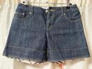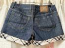 ダークデニムにチェック柄の折り返しデザインのショートパンツ。