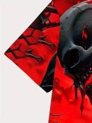 メンズ グラフィックプリントTシャツ - 大胆な赤と黒の炎スカルデザイン、レギュラーフィット ラウンドネック、洗濯機可 オールシーズン カジュアルティー