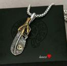 クロム シルバー クロウ 爪 シングル 1 フェザー 羽根 あずき チェーン ネックレス 手首 には ブレスレット です。