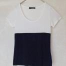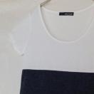 ホワイトとブラックのツートンカラー デザインの半袖、カットソー。