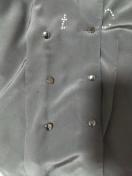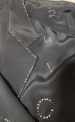 サテン素材のビジュー付きダブルブレストシャツ、カジュアルなスタイルに最適。